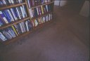 I didn't have to use a wide-angle lens, but if I'd used a normal lens I would have had to take more pictures to capture the whole room. Note that the pictures overlap significantly at the edges. This allowed me to relate the pictures to each other by identifying the pixel locations of a number of key points in each image--corners of picture frames, bookshelves, etc--that neighboring pictures have in common. I fed this list of pixel locations, along with the focal length of the lens I used to take the pictures, to a program I wrote that inferred from this which direction the camera was facing for each picture.