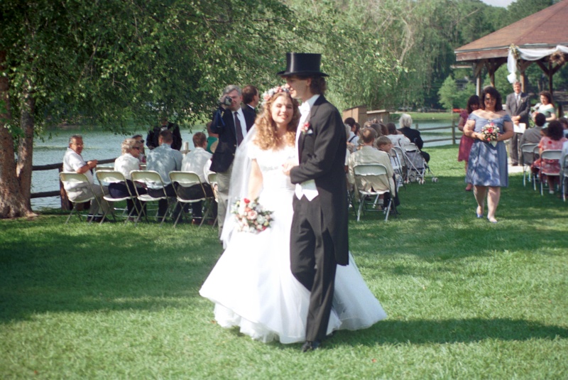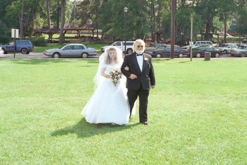 When everyone was standing ready, the bride's processional (1.1M) music began, and Dawn and her father began the long walk from the street.