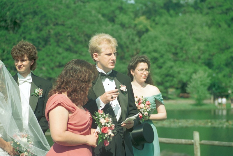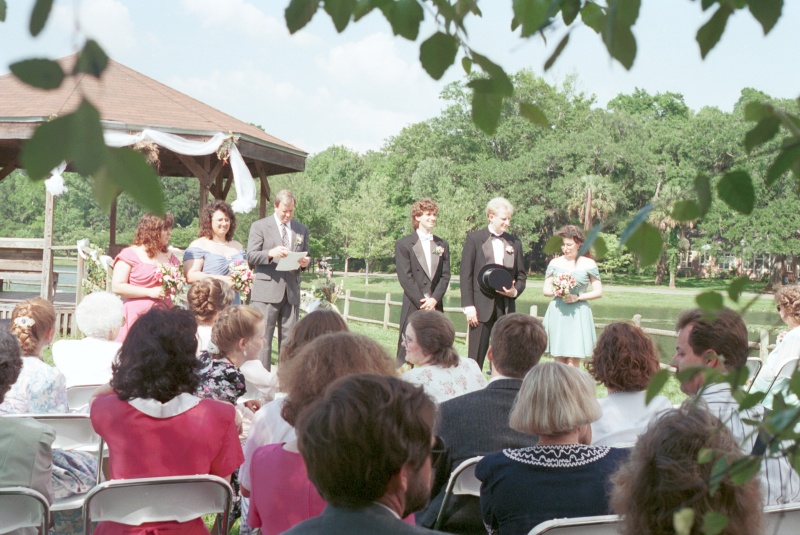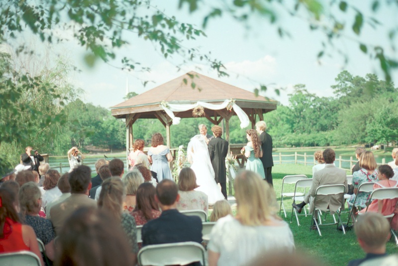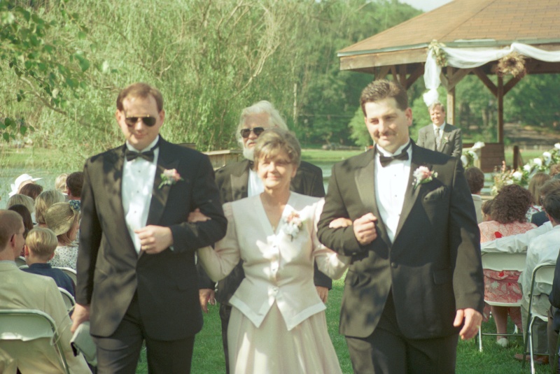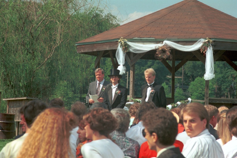 Finally, the last guests were seated, and the ceremony music (1.2M) began. Dawn's mother was seated, and David, Michael, and Mr. Curtis took their places at the end of the gazebo ramp.