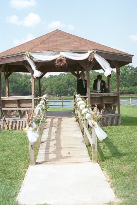 The lake's fountain was working well and the gazebo's decorations (put up that morning) were beautiful!