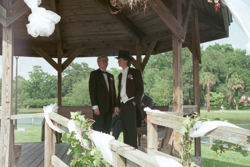 For one reason or another, things were running a bit behind schedule. Meanwhile, back at the lake, guests were being seated, the music was playing, and David and Michael were standing around waiting for something interesting to happen.