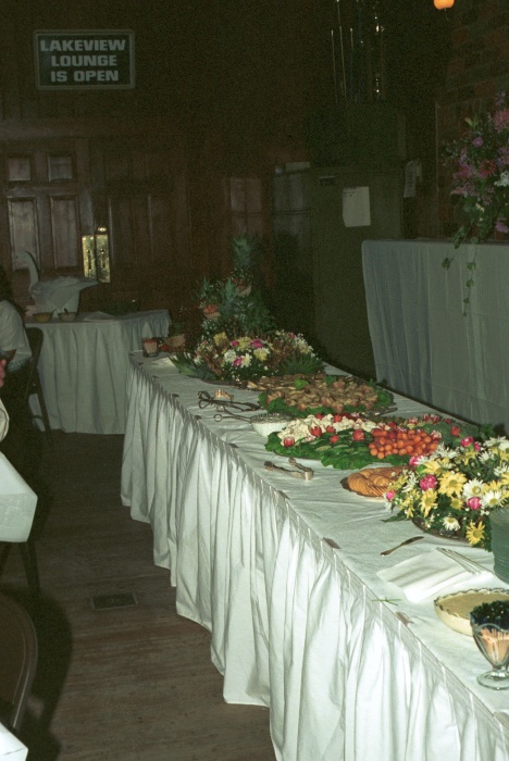 We held the reception at the American Legion Hall around the lake. We arrived there almost an hour later than we'd originally planned, but still in good spirits. Fortunately, so were our guests.